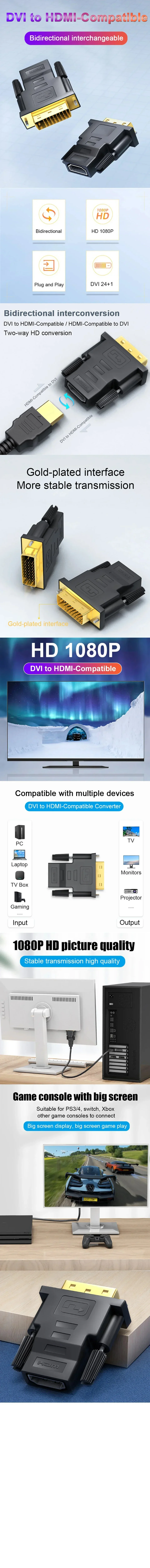 1080P DVI to HDMI-Compatible Cable Adapter DVI Male to Female Bi-directional Connector Converter for PS3 Projector Laptop TV Box