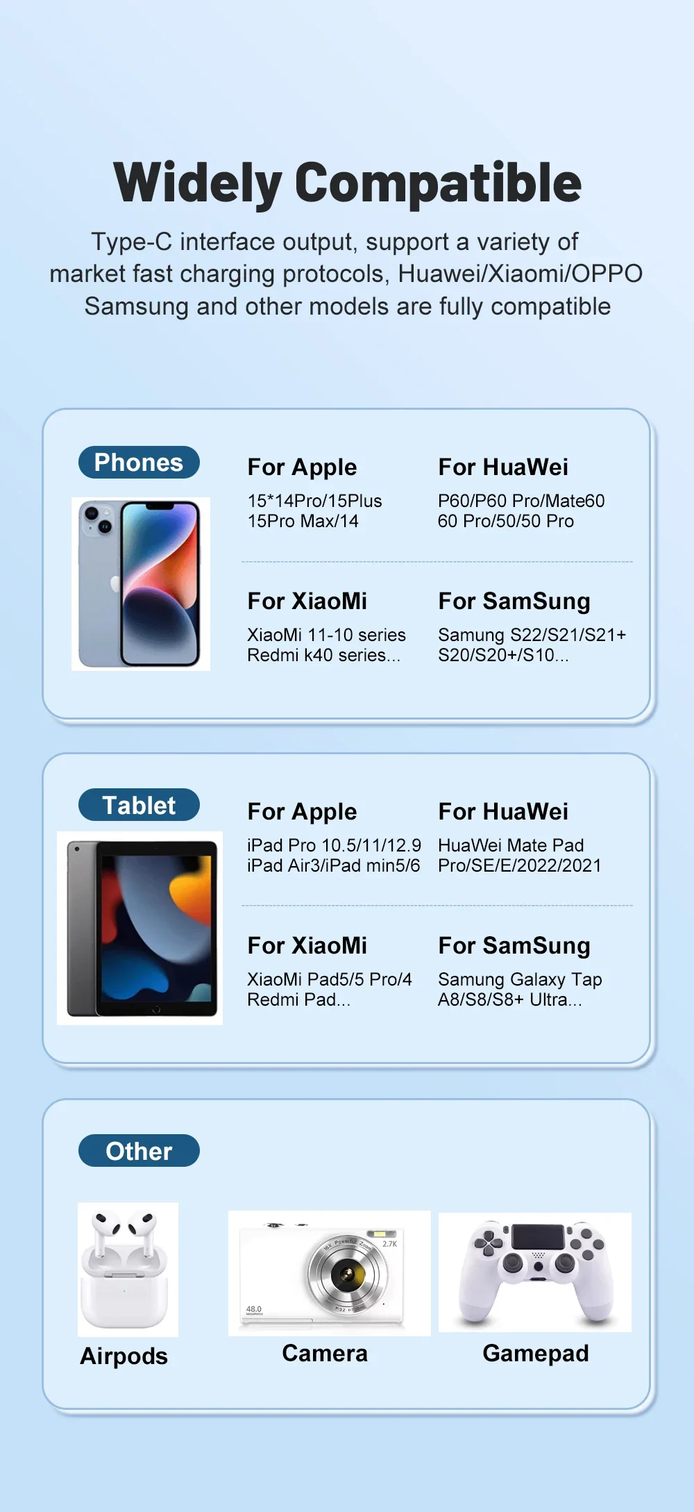 • Universal Compatibility :Compatible with a wide range of devices, including mobile phones, tablets, and other USB-powered devices.