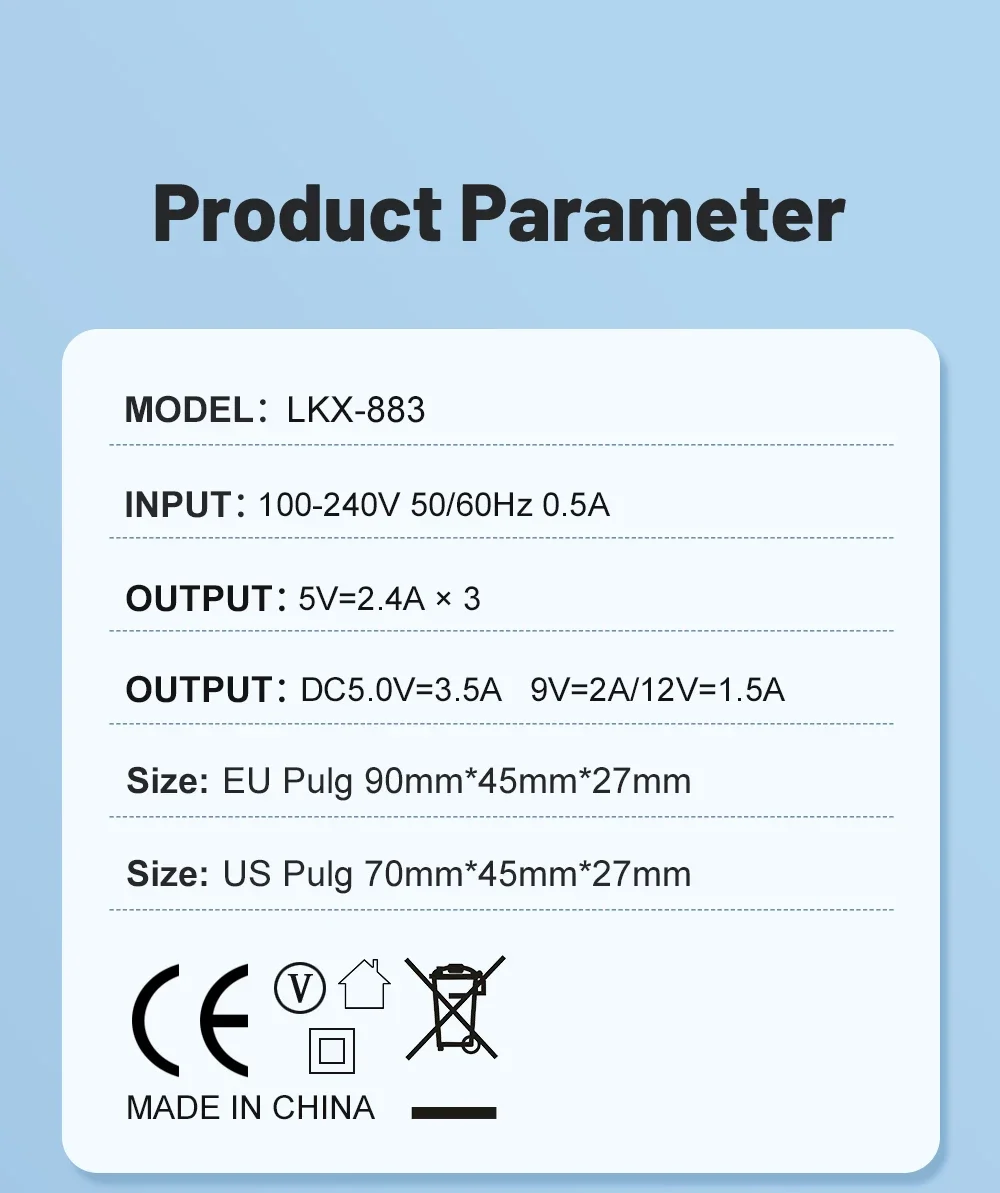 • High Power Output :With a maximum output power of 12W, this charger can handle even the most power-hungry devices.