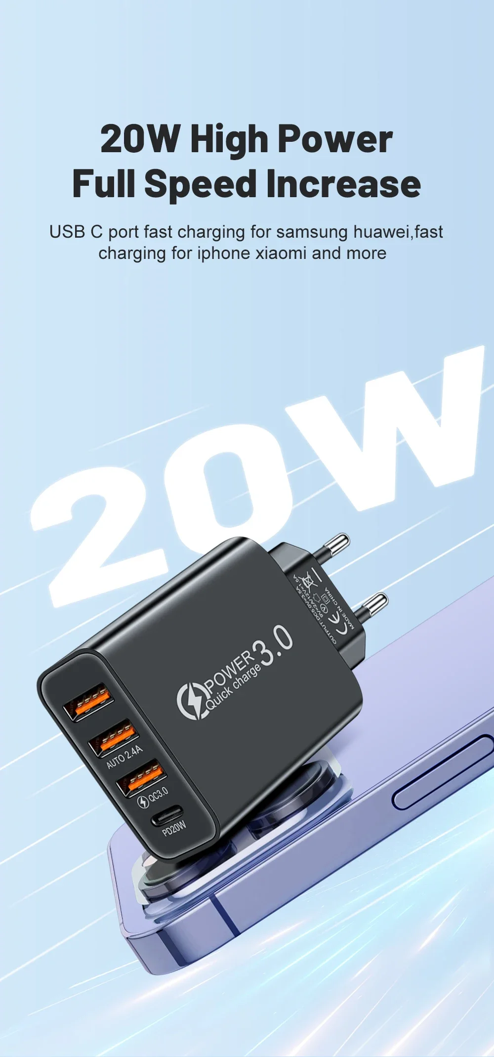 Total 48W Multi-Port USB PD Wall Charger for Smartphones